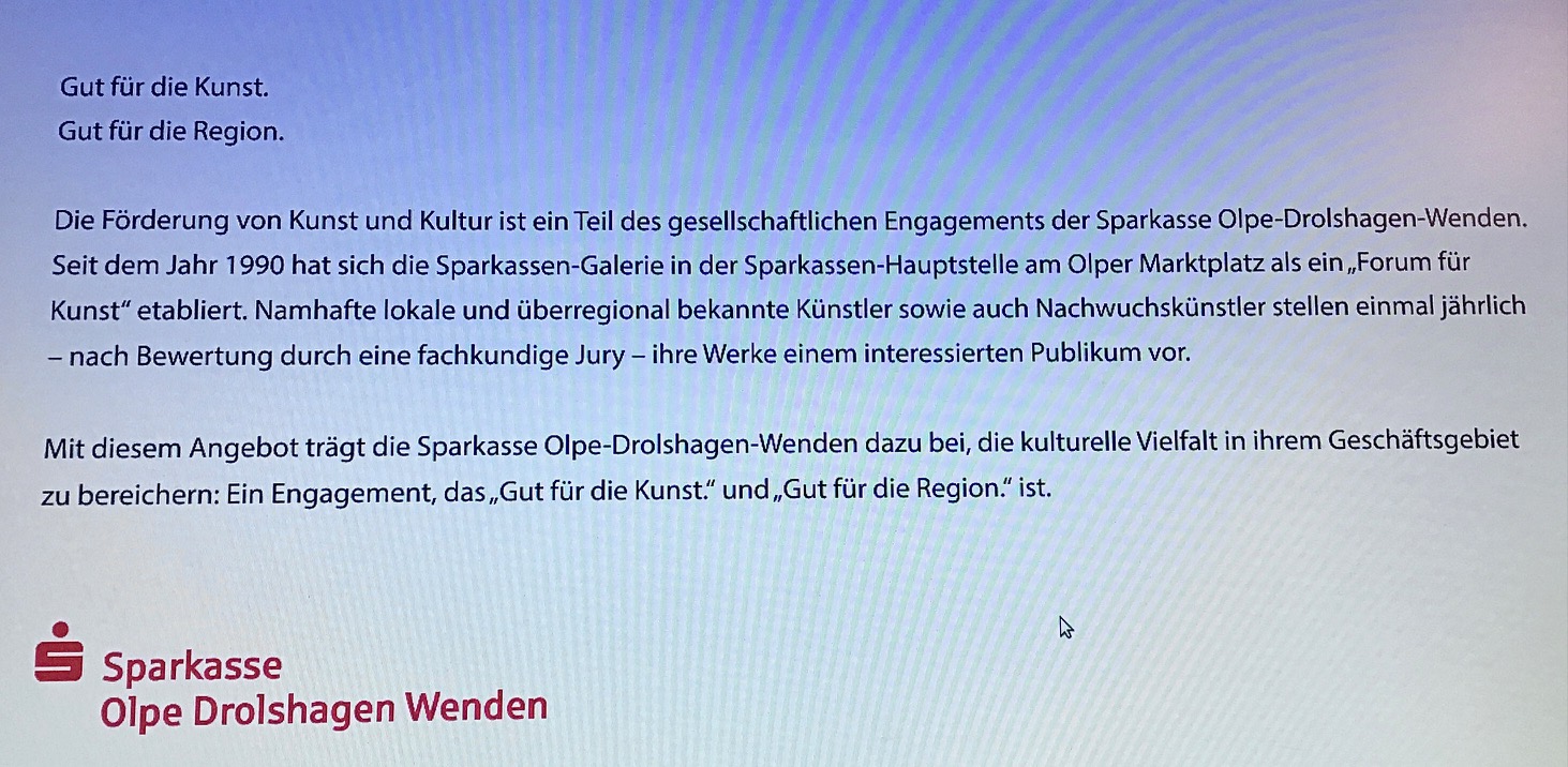 Einladung Ausstellung "Dazwischen der Zweifel", Galerie Sparkasse Olpe, Februar 2026