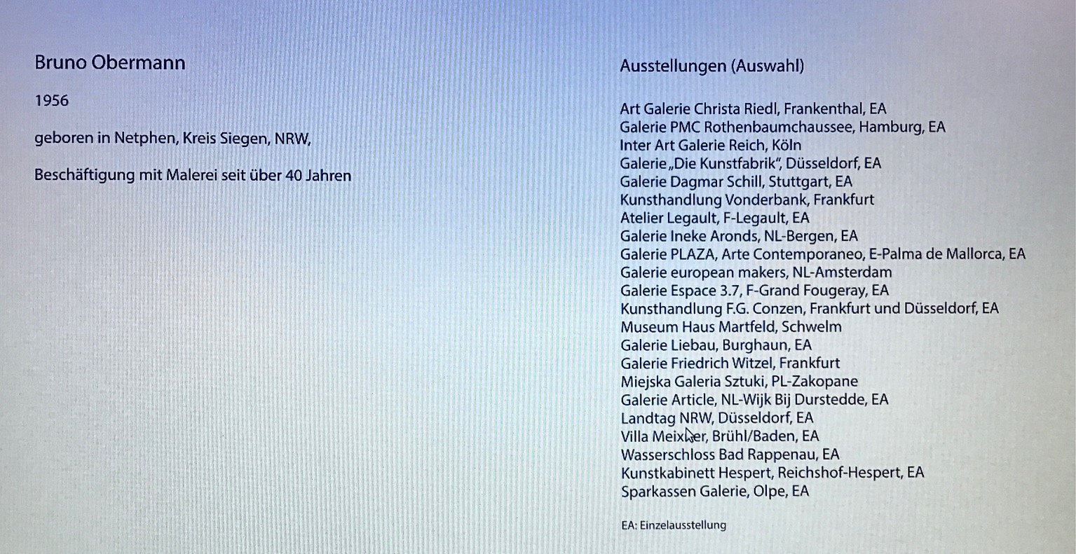 Einladung zur Einzelausstellung "Bruno Obermann", überBLICK Figur, Farbe, Kraft. KUNST KABINETT HESPERT, Sept. 2024