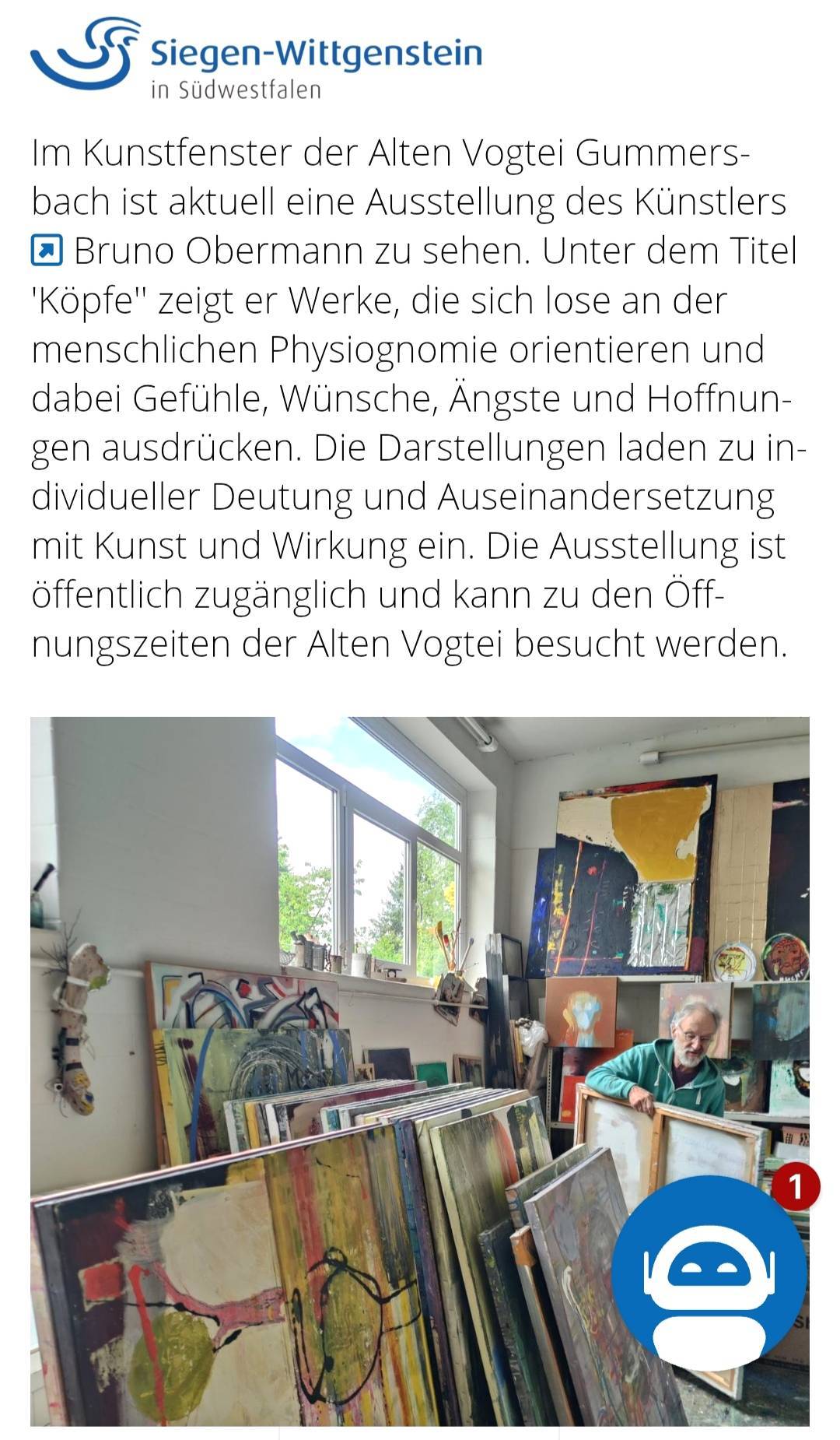 Einladung Ausstellung Qulturwerkstatt Q, Netphen-Deuz, "Bruno Obermann - Nah dran", Januar 2025